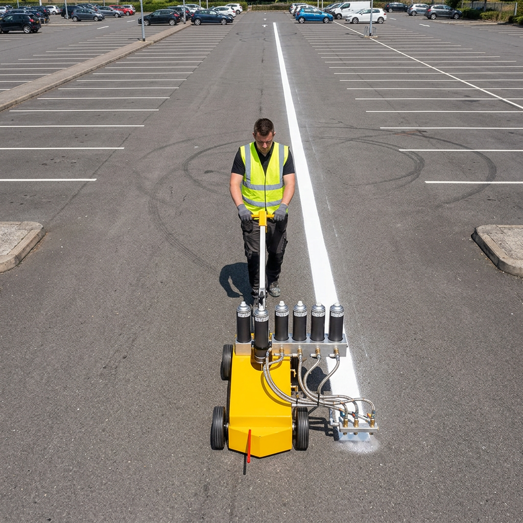 Perfect for sports stadiums, large car parks, industrial estates, airport aprons, and logistics parks where long, uninterrupted marking runs are required. The 5-can capacity significantly reduces downtime and improves overall marking productivity.