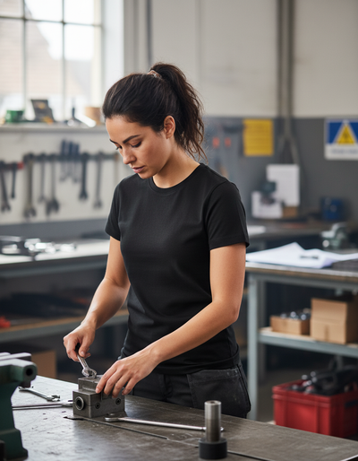 - Premium Women's Classic T-Shirt with Ribbed Collar and Side Seam - 100% Cotton for Comfort and Durability