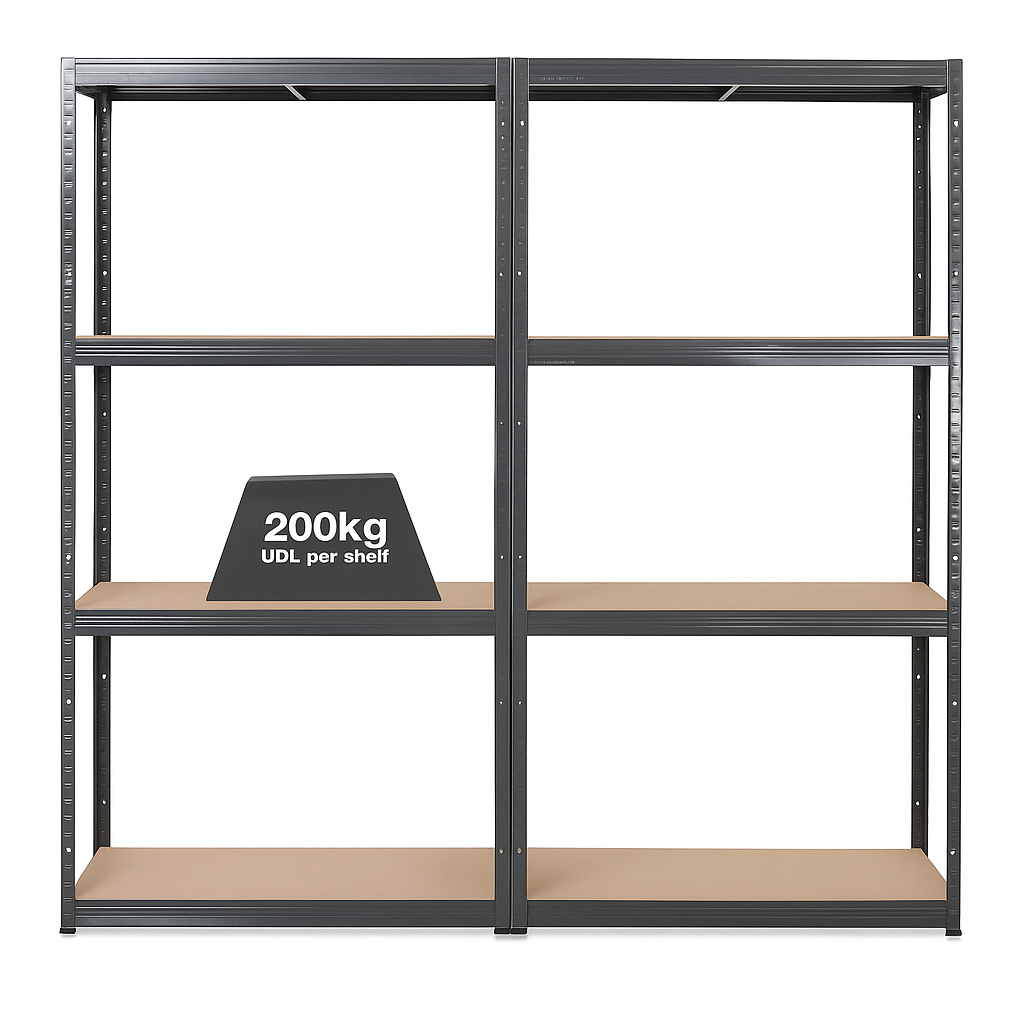 Each shelf supports 200 – 280 kg UDL, giving you up to 1120 kg total capacity per unit.