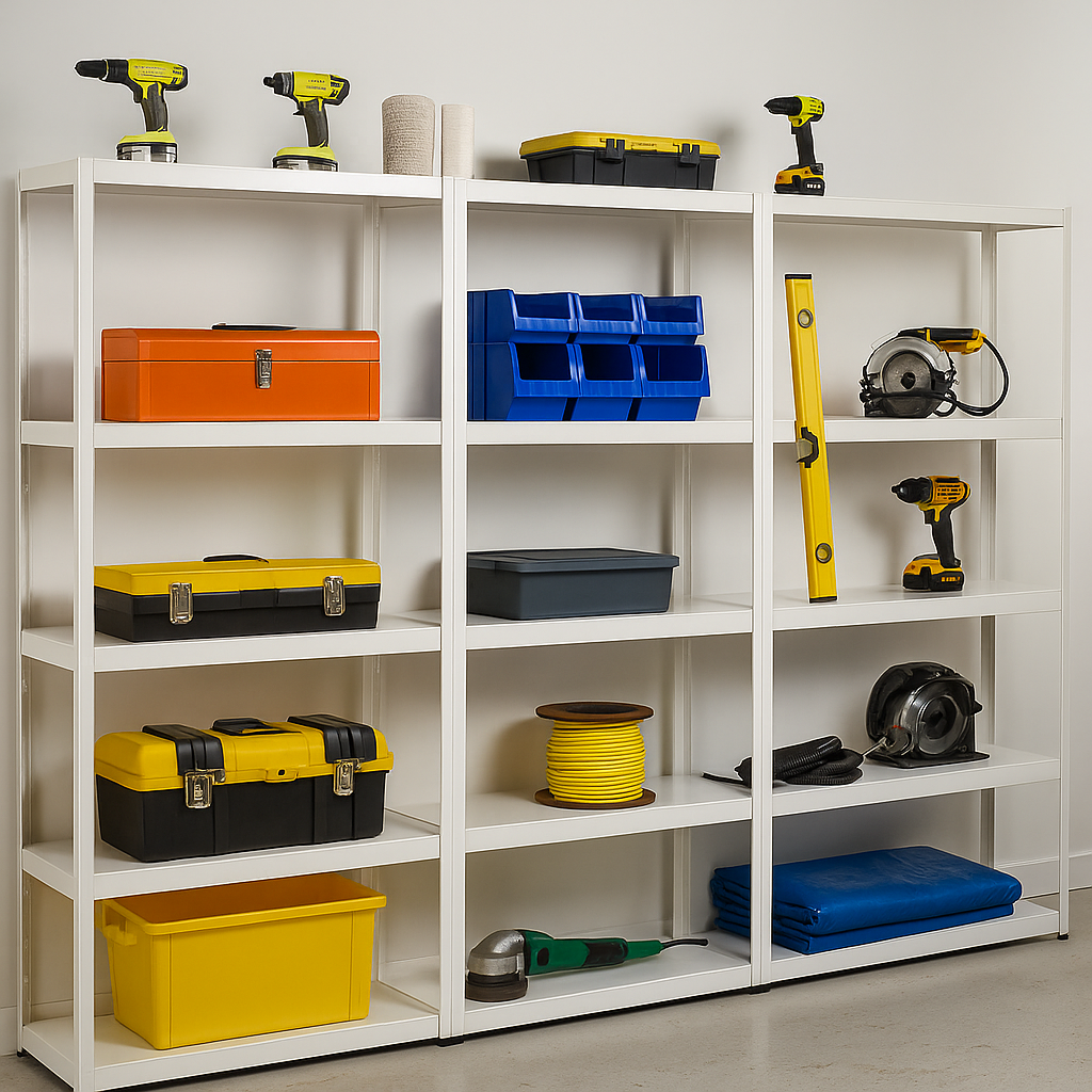 Each shelf supports up to 90–130 kg, ideal for storing heavy tools, boxes, and equipment. -