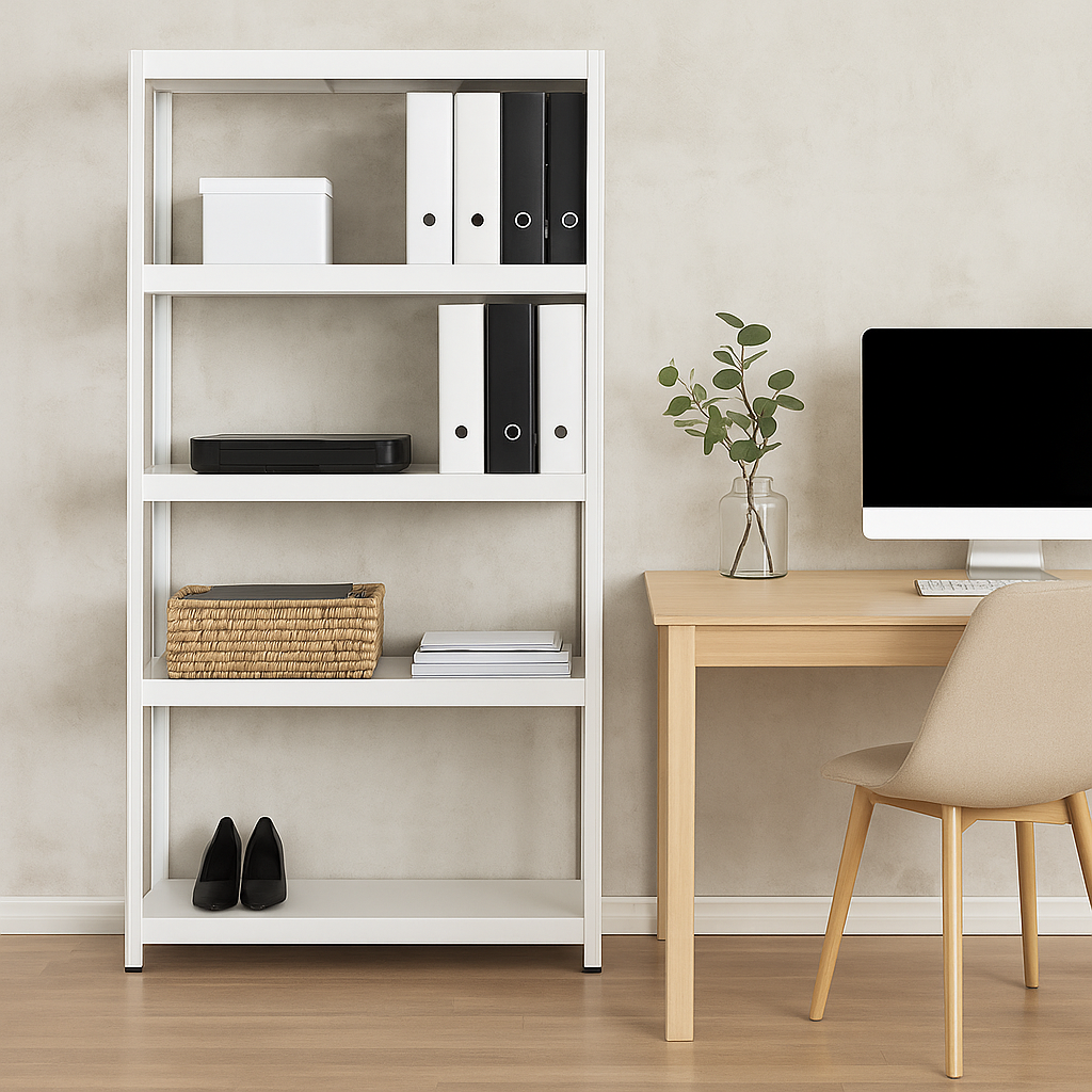 Each unit stands 1800 mm tall, with adjustable shelves that can handle up to 130 kg per level (evenly distributed). Whether you’re organising tools, paint, or workshop supplies, the boltless design makes installation quick, stable, and frustration-free — no bolts, nuts, or screws required.