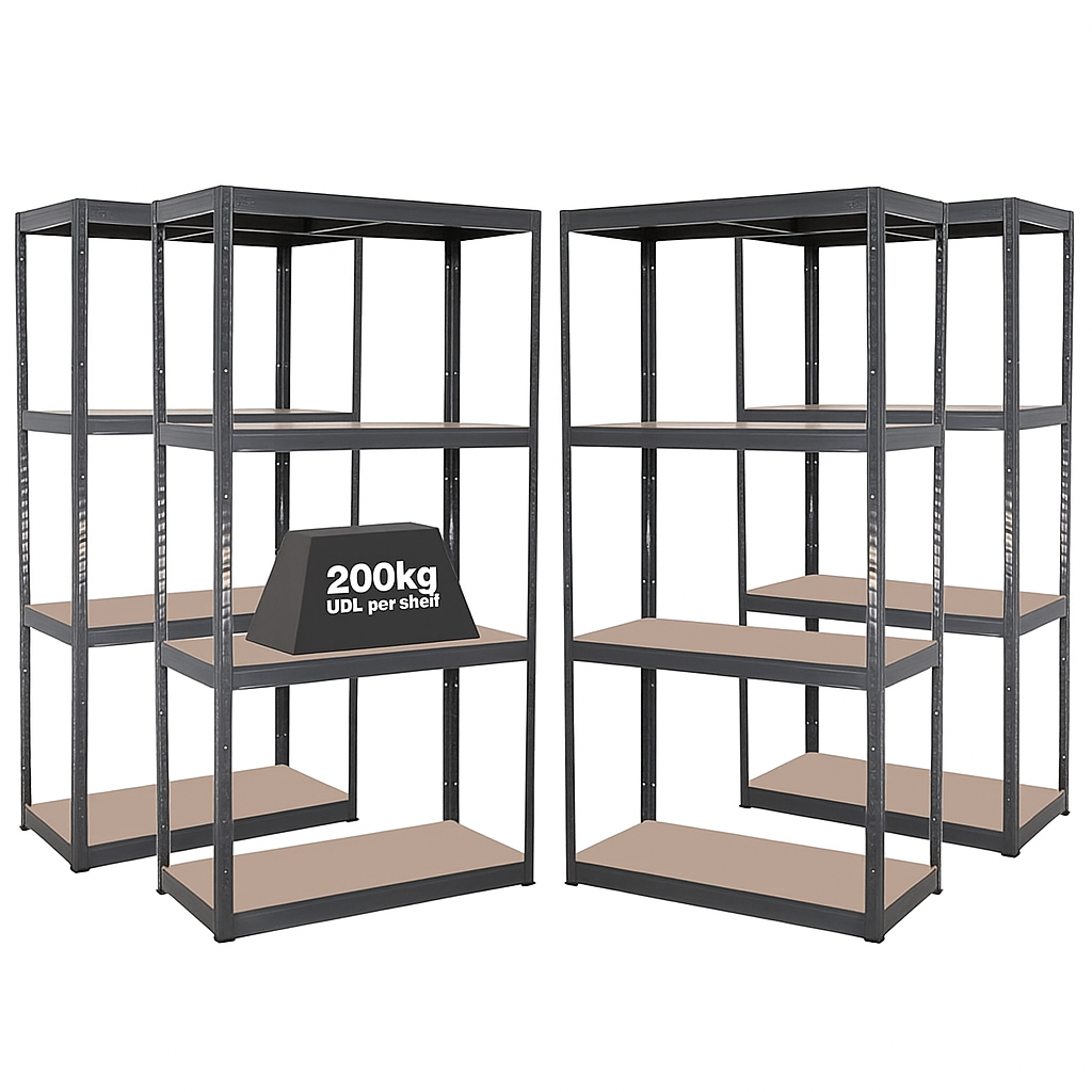 Holds up to 280 kg per shelf (UDL) – that’s over 1.1 tonne per 4 & 5-tier unit.