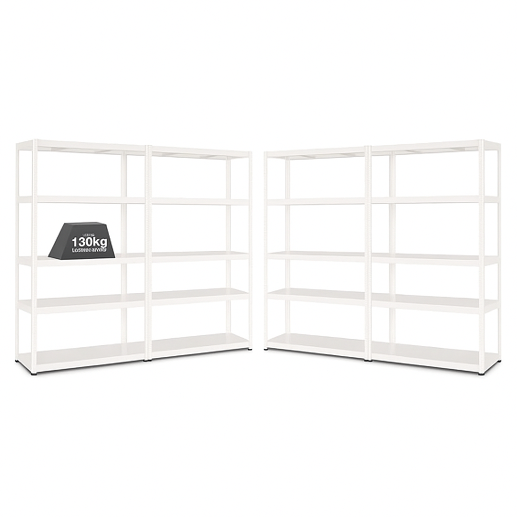 With five adjustable shelf levels (adjustable every 35mm) you get complete flexibility to store toolboxes, power tools, tyres, storage bins, engine blocks and more — all with confidence thanks to the robust 130 kg load per shelf (650kg total per unit) rating.