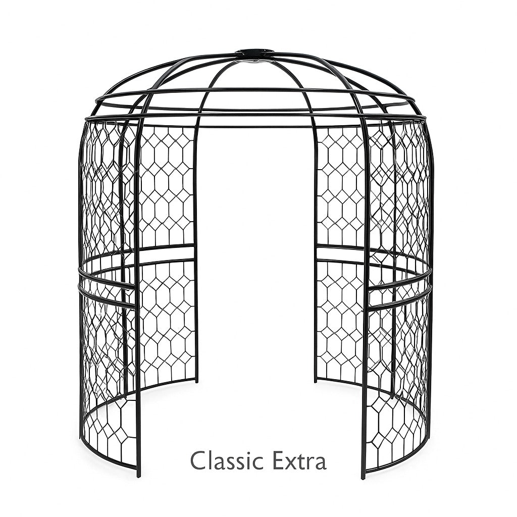 Create a timeless focal point and a calm, shaded retreat. The Round Garden Arbour is engineered in galvanised steel with a UV-stable matt-black textured finish to resist the elements year after year. Sized from Ø 1.5 m to Ø 2.4 m, it’s strong enough for vigorous climbers (roses, wisteria, jasmine, honeysuckle) and spacious enough for a two- or three-seater bench.