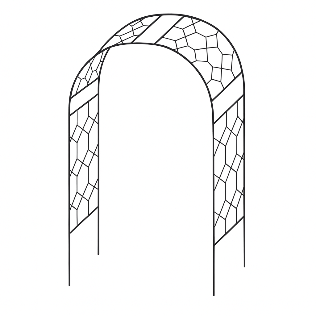 Thanks to slim welded joints, the arch maintains a refined silhouette, while optional lattice infills provide structure for climbers to latch onto early in their growth. As plants mature, they blend into the framework, creating a living canopy.