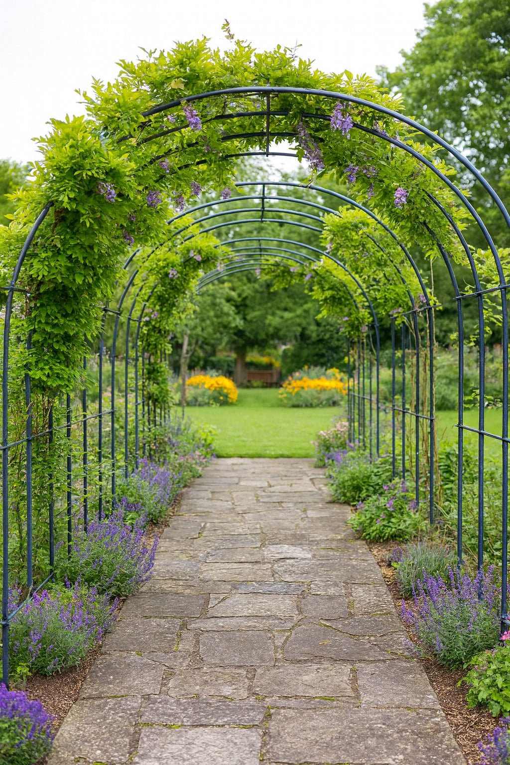 • Living tunnel of greenery under overhead arches