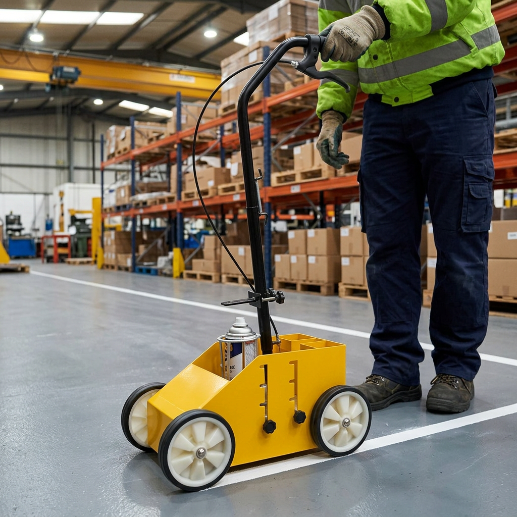 Perfect for car park and road line marking, sports pitch boundary lines, factory floor zones, playground safety markings, and warehouse aisle marking. The adjustable width makes it versatile for multiple line widths in a single session.