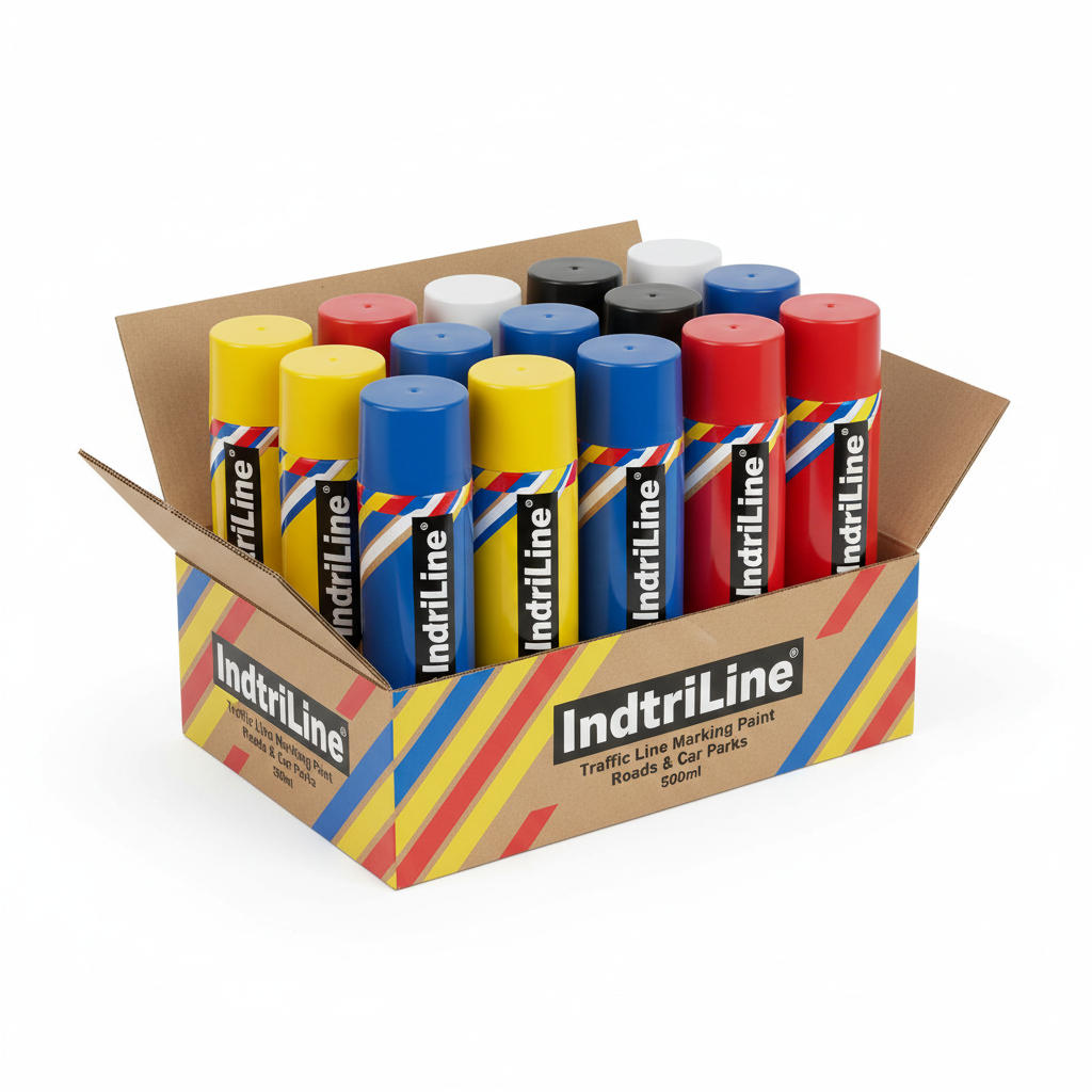 IndtriLine Traffic Line Marker Aerosol Paint – 12 × 500ml | 6 Colours | Fast-Drying