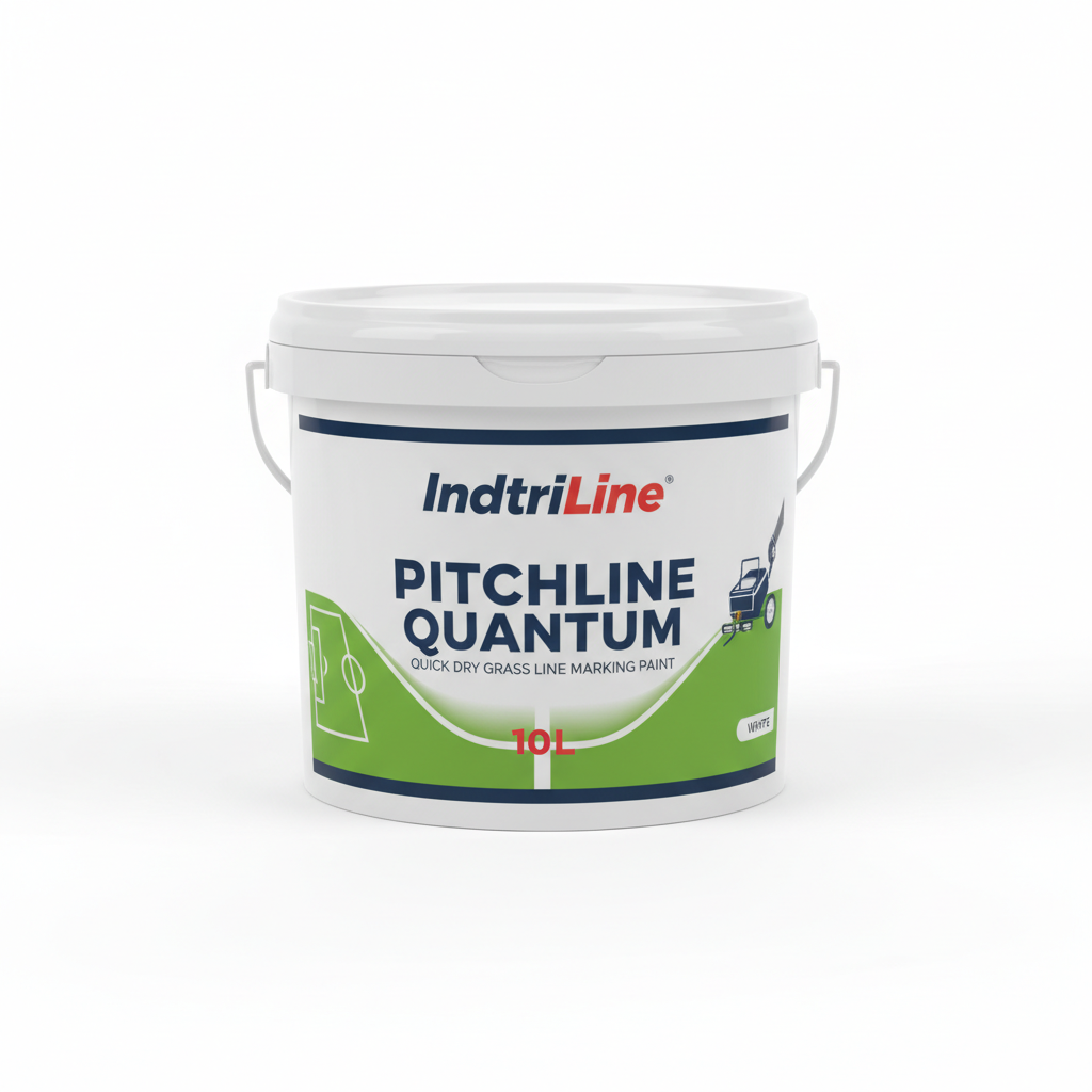 IndtriLine PitchLine Quantum offers speed, quality and economy for grass sports pitch marking. A blend of highly micronised Titanium Dioxide, resins and surfactants for durable white lines — a single 10L container overmarks a standard football pitch with just 1.1 litres.