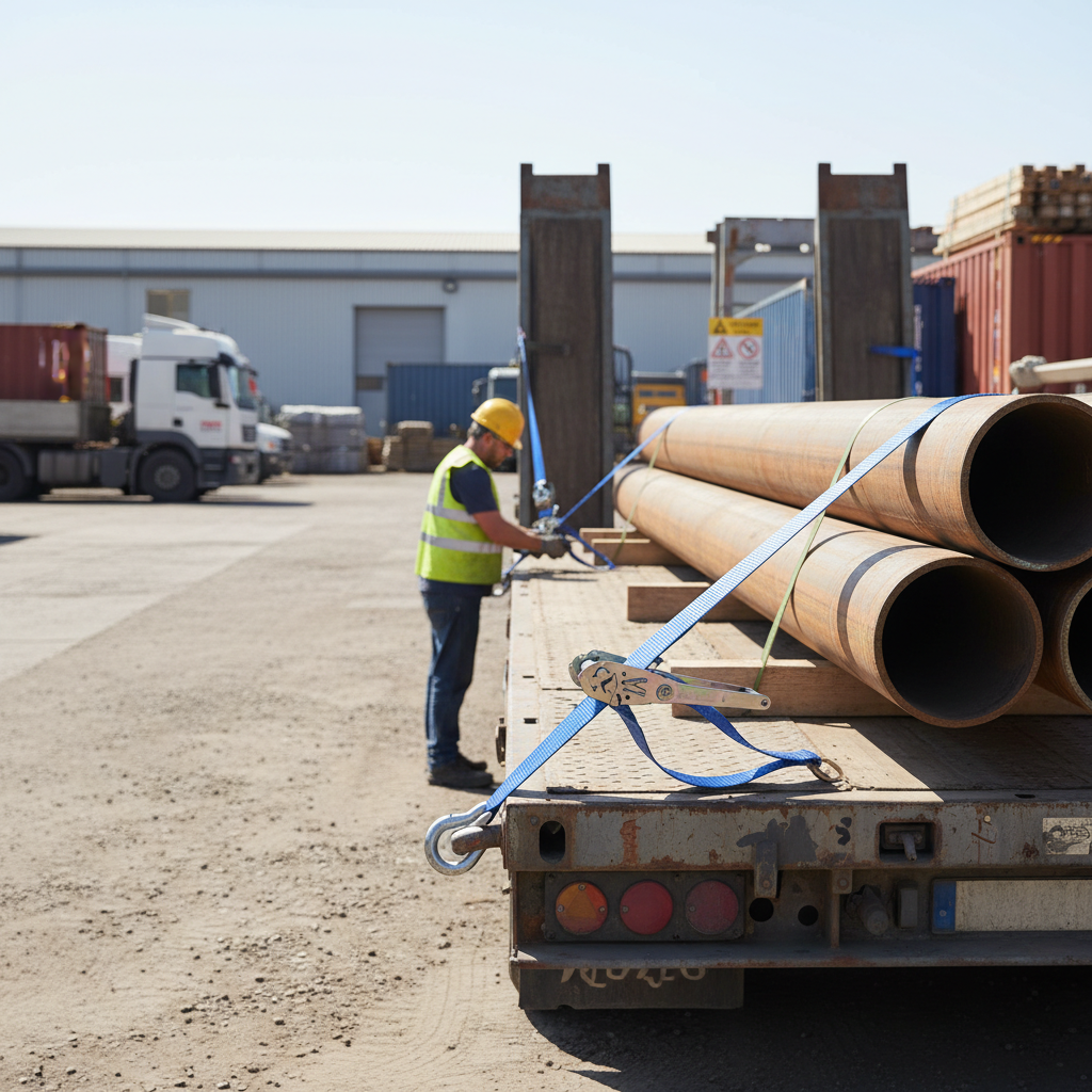 Ensure the strap is securely attached to the load. Use the ratchet mechanism to tighten the strap adequately. Always check for wear and tear before each use to guarantee safety.