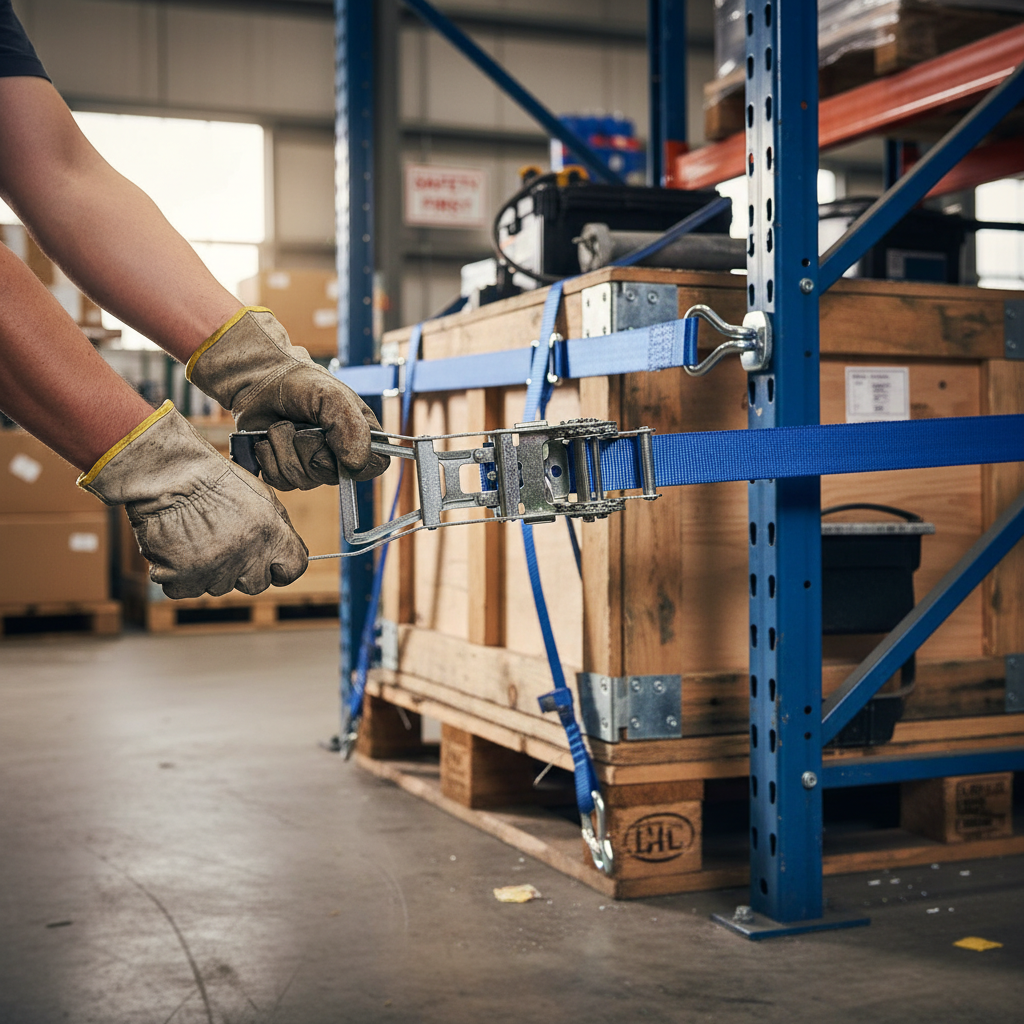 Powerful long handled ratchet tensioner with double lock handle. The handles are pulled down, rather than the pushed up like on standard ratchet straps. This means that less force is required to apply the correct tension and less stress is put on your back and arms when using Ergo ratchet straps.