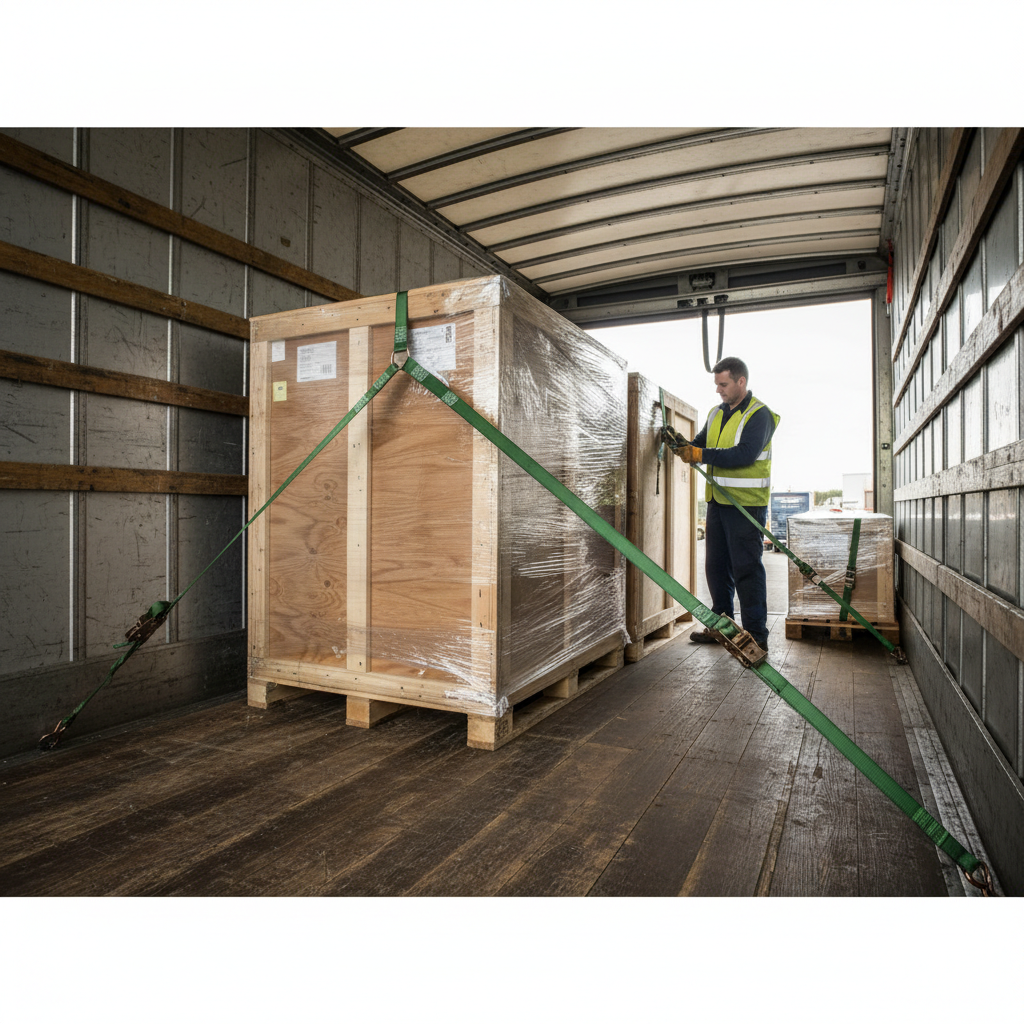 These straps are ideal for securing loads in box vans. Ensure that the claw hooks are properly engaged with the anchor track before tightening the strap. Regularly inspect the straps for wear and tear before each use.