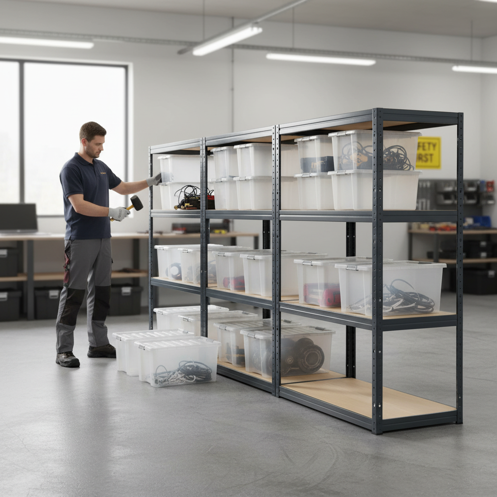 Finally, enjoy an organised and accessible garage or stockroom! These sturdy shelves are the quick and easy way to clean up and organise your storage space. Thanks to the smart boltless assembly system, they’ll be ready to use in minutes.