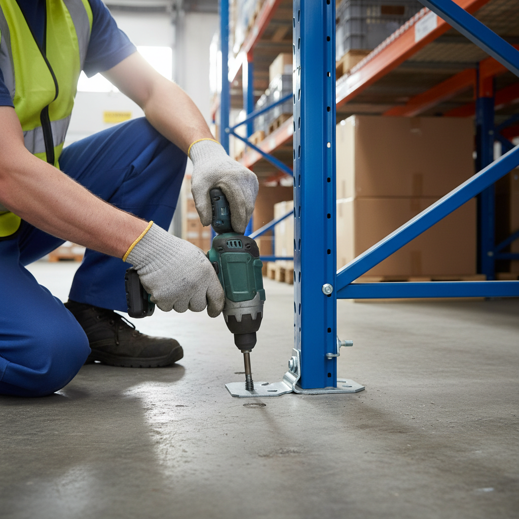 Pack of 4 single steel feet designed to enhance the stability of your industrial shelving units. These heavy-duty feet can be fixed to the floor for increased support and durability.