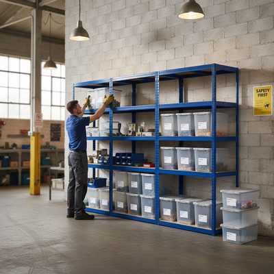 • Heavy Duty Shelving Units with 12x 60L Plastic Storage Boxes - 2130mm High
