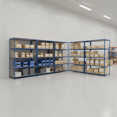 - Premium Industrial Shelving - 1830mm High - 200kg Capacity - Chipboard - Blue Finish