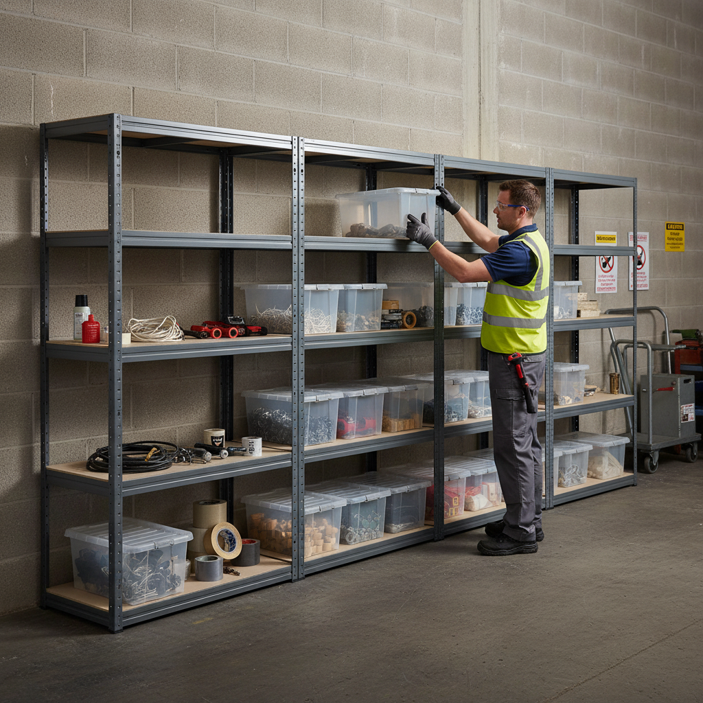 • 4x Heavy Duty Shelving and Plastic Storage Box Bundle