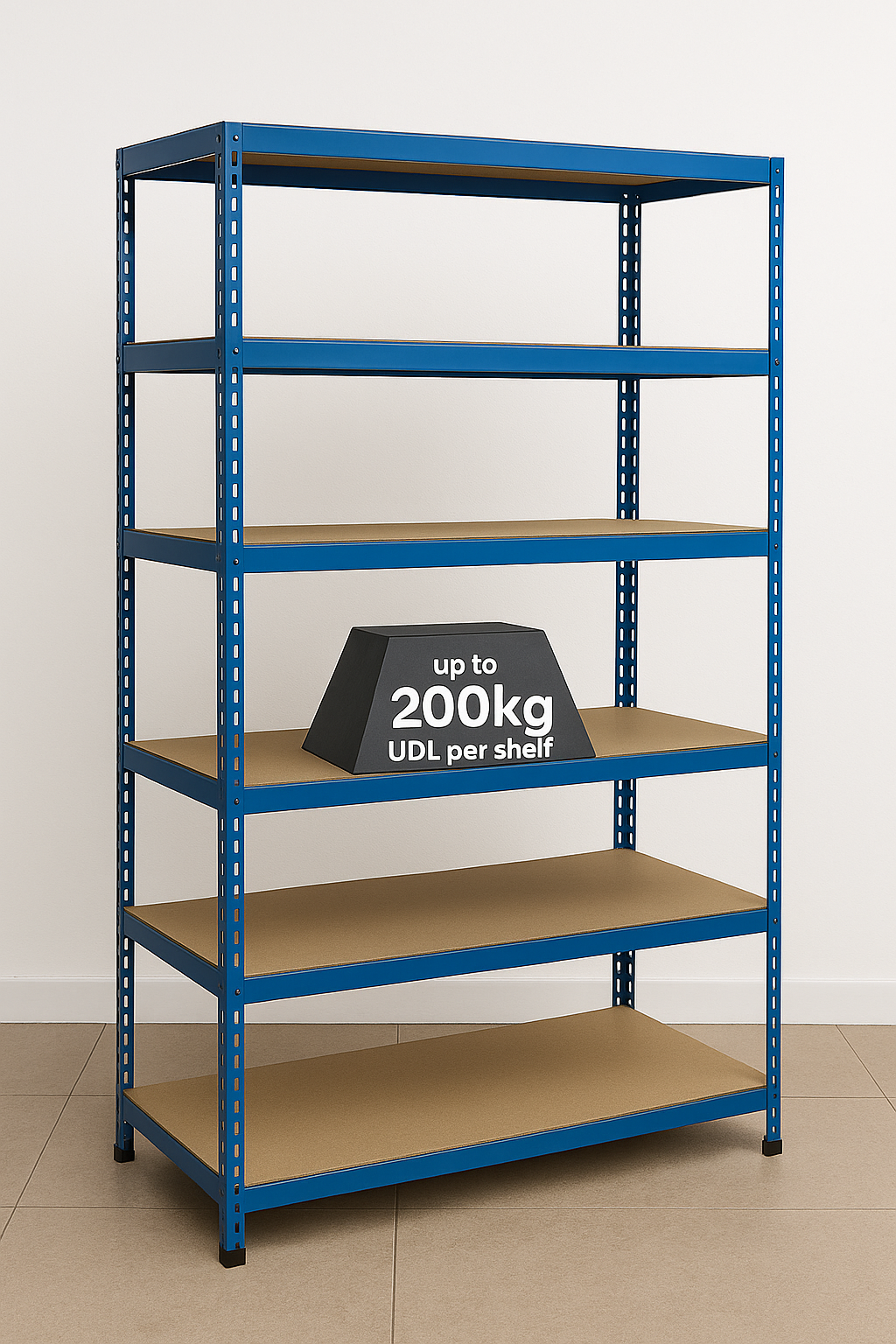 Choose from a wide range of widths (610mm up to 1,525mm) and depths (305mm up to 610mm) — so you can pick the perfect footprint for a domestic garage, workshop or full business stockroom. Each shelf has been rated for up to 200 kg UDL, giving you confidence in the build. Tool-free, slot-fit assembly means you can have it set up in minutes, and expansion is simple if you need to add more bays later.