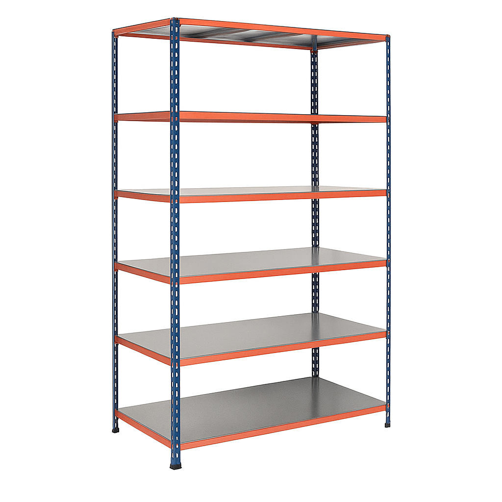 • Industrial-grade build – Durable powder-coated steel uprights (blue) with orange top & bottom beams (brand accent), plus chipboard/melamine/steel shelf boards for heavy duty durability.