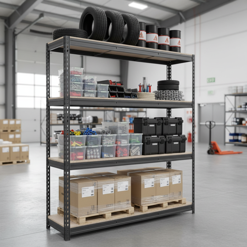 - Industrial grade, heavy duty shelving