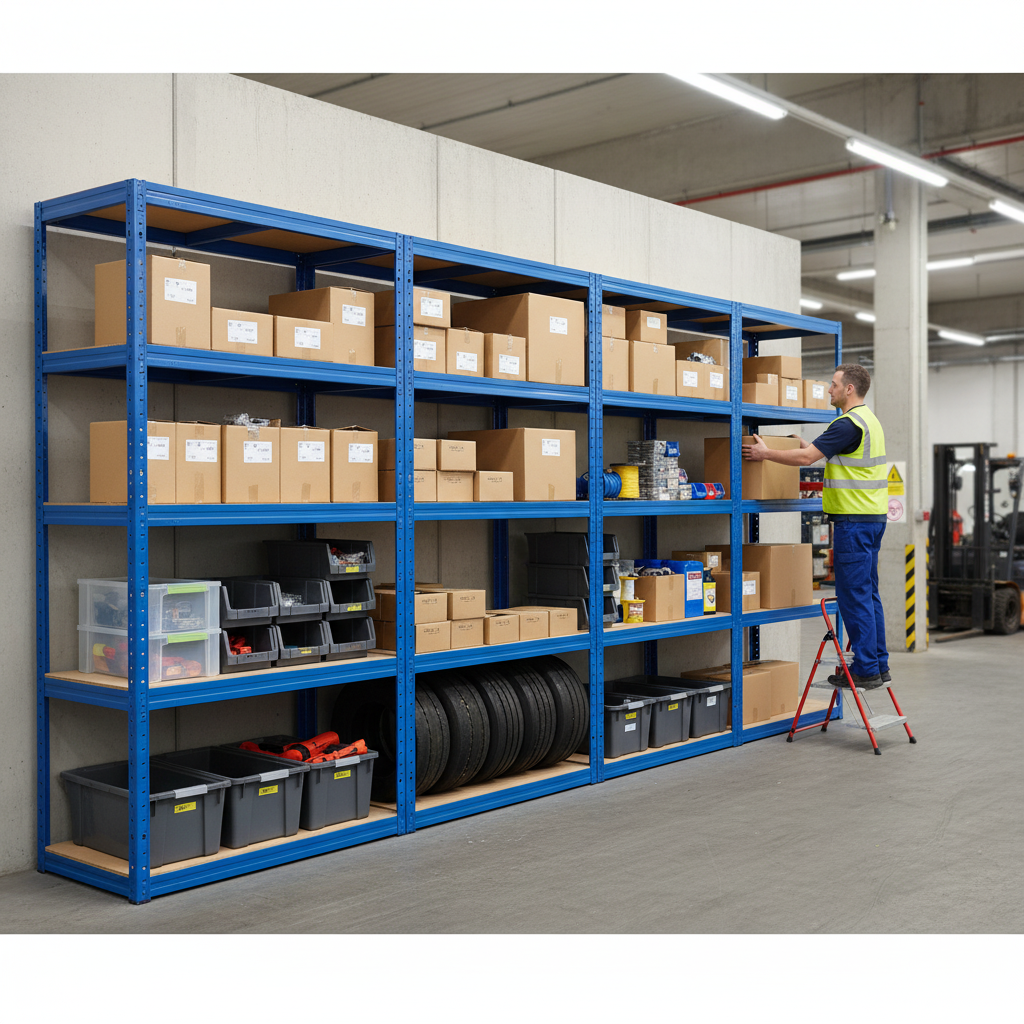 Finally, enjoy an organized and accessible garage or stockroom! These sturdy metal industrial shelving units offer a quick and easy way to clean up and organize your storage space. Thanks to the smart boltless assembly system, they’ll be ready to use in minutes.