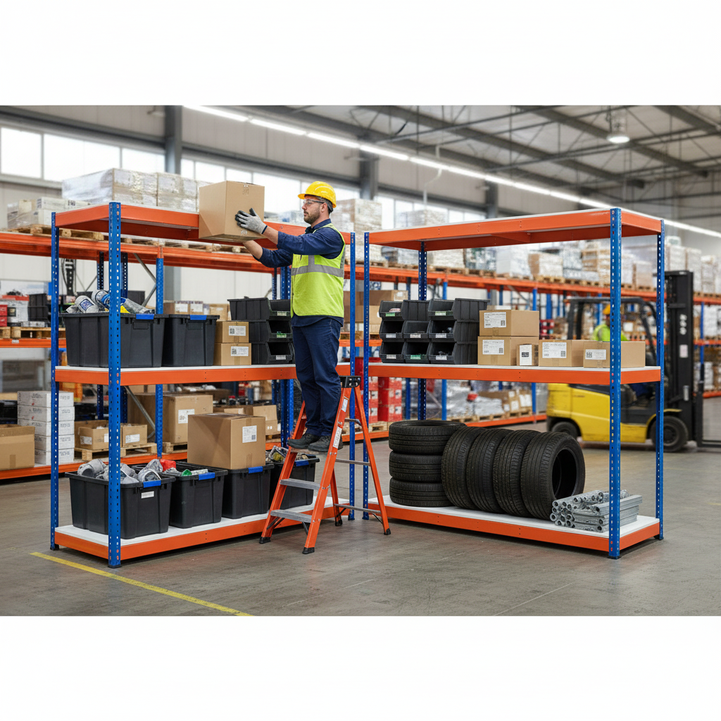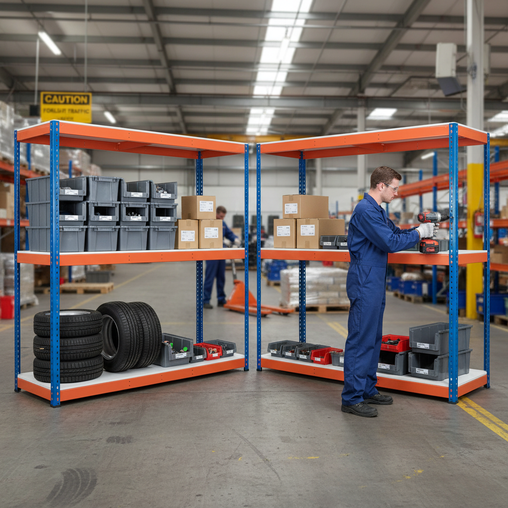 Premium Heavy Duty Industrial Shelving - 400kg Capacity in Blue & Orange