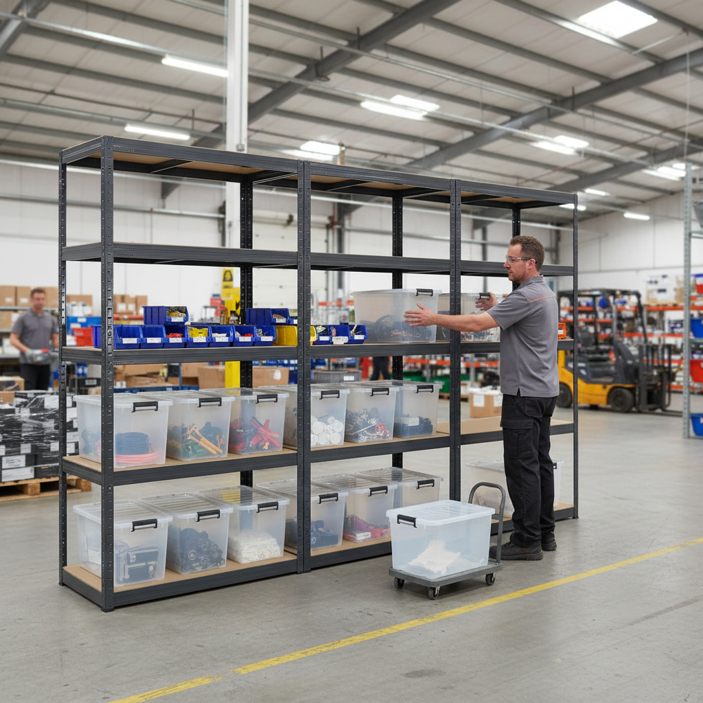 Heavy Duty Shelving Units with 10x 37L Plastic Storage Boxes - 1800mm High