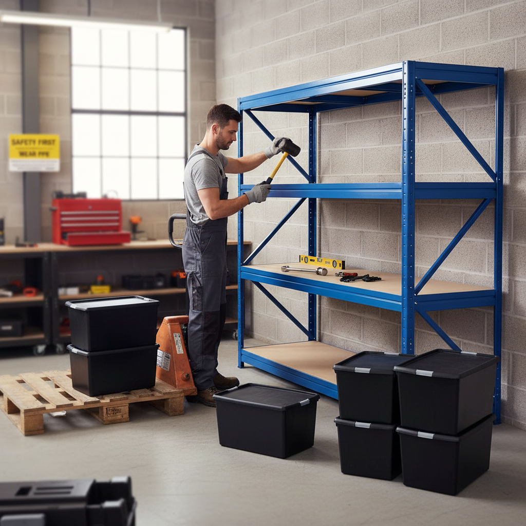 These extra wide, heavy duty shelving units offer a quick and easy way to clean up and organise your working space, warehouse or garage. Thanks to the smart boltless assembly system, they’ll be ready to use in minutes.