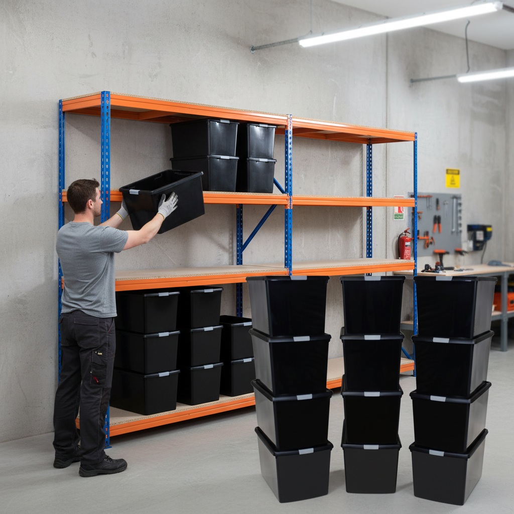- Choice of 8 or 12 strong, durable 37L recycled black boxes helping you to keep your storage neatly organised and protected.