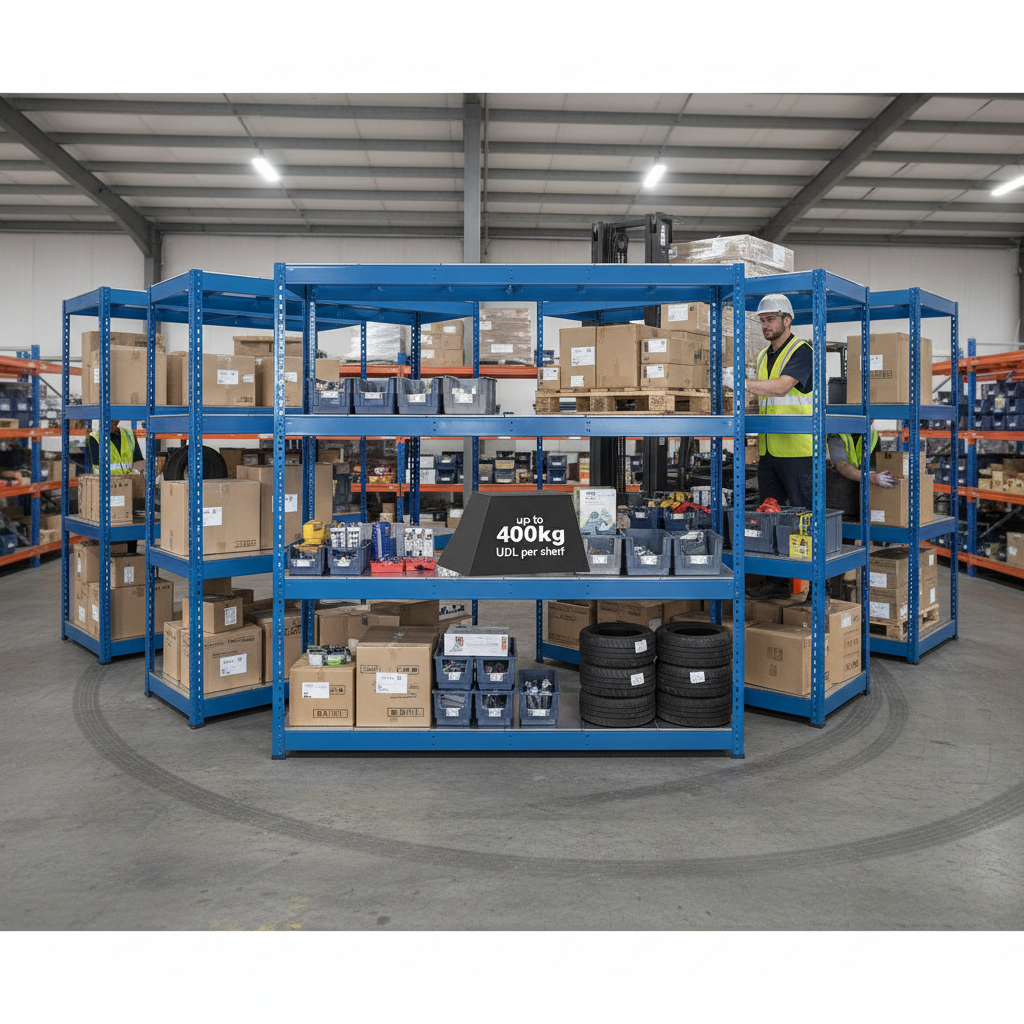 Engineered for demanding industrial environments, our premium heavy duty steel shelving system stands an impressive 2440mm tall and delivers exceptional 400kg per shelf load capacity. The robust steel construction provides superior strength and durability, making it the ideal storage solution for warehouses, factories, and commercial facilities across the UK.
