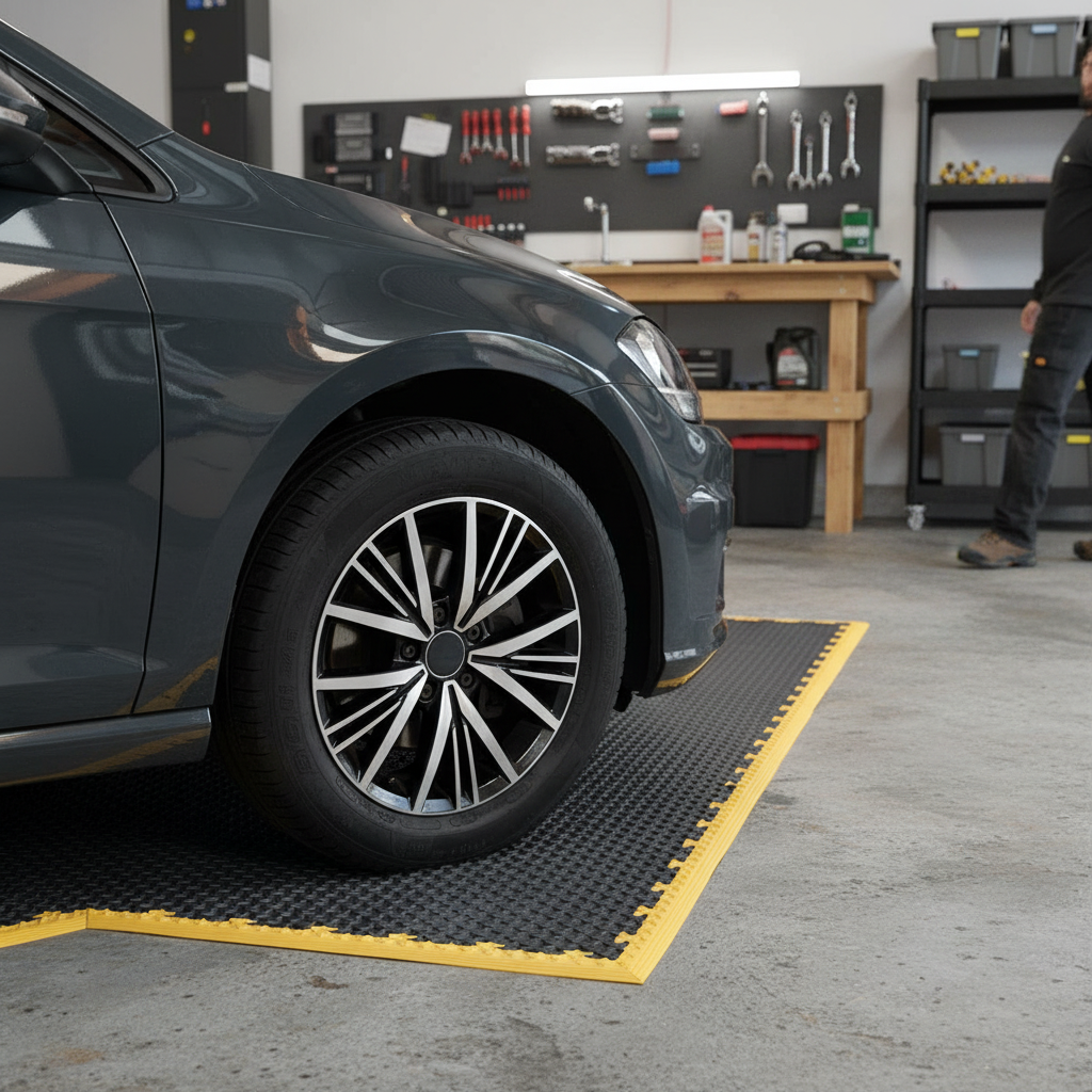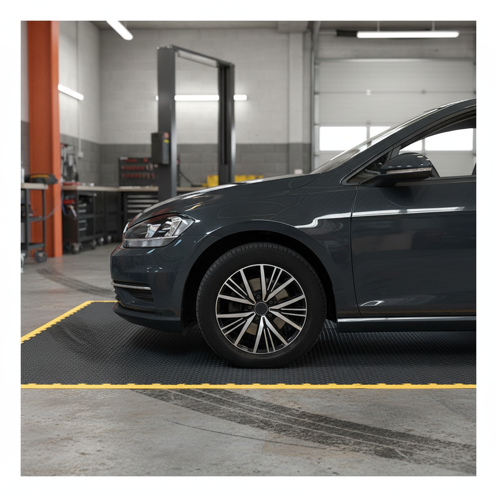 Transform your garage with this Heavy Duty Interlocking Floor Tiles Kit, designed for high performance and durability. These tiles are perfect for areas with heavy foot and vehicle traffic, providing an anti-slip surface that enhances safety while working. The kit is available in two sizes, ensuring a perfect fit for your space.