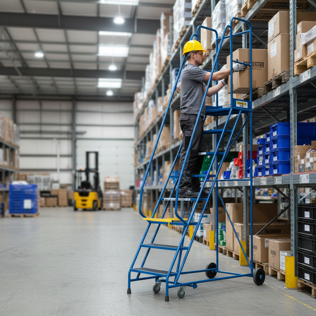 Heavy-duty mobile safety steps are built for safety, stability, and ease of movement, making them ideal for warehouses, factories, workshops, and stockrooms. Designed with robust construction and user comfort in mind, they provide a secure working platform for tasks at height.