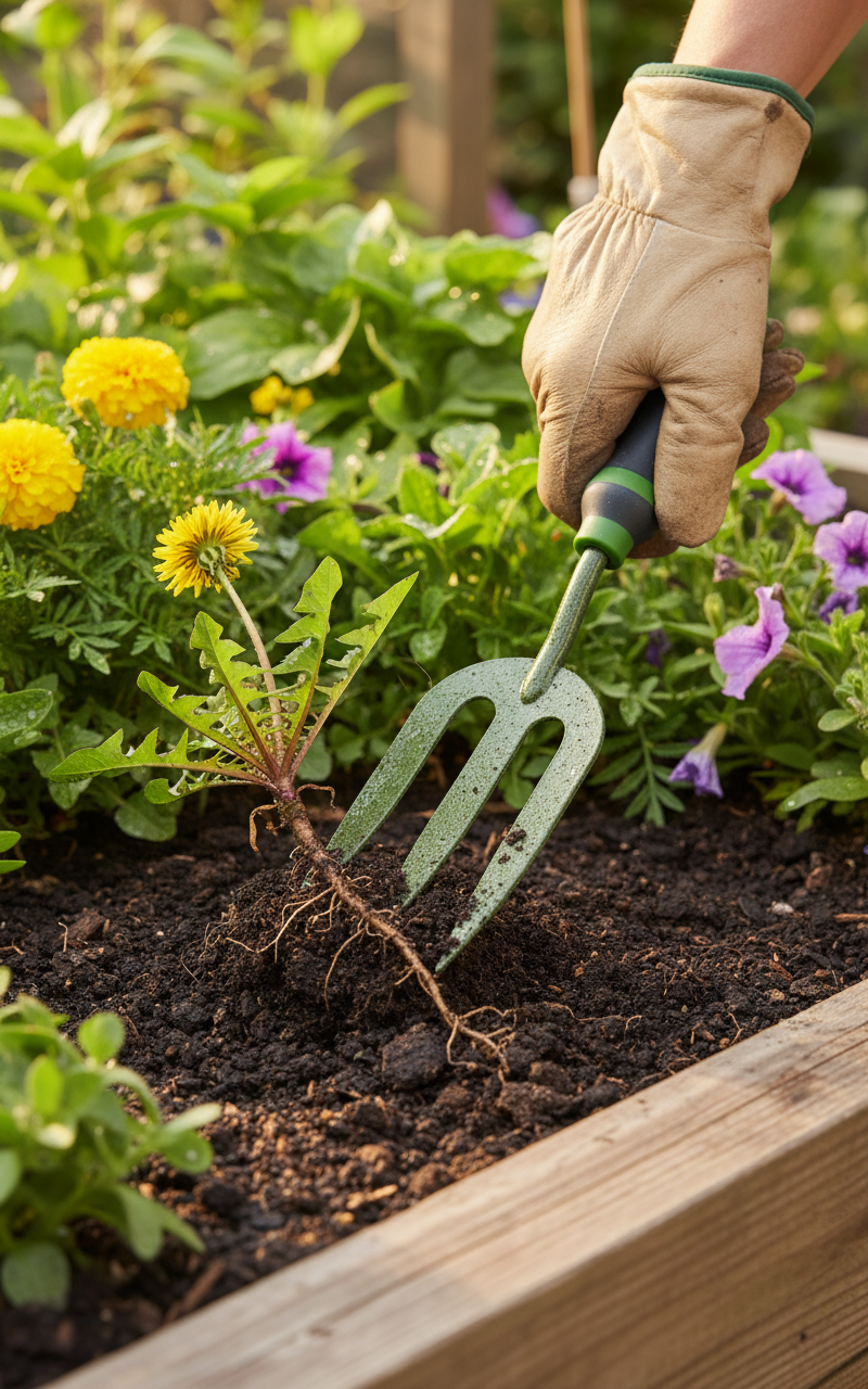 • Premium Hand Weed Fork with Soft Grip Handle and Carbon Steel Blades for Efficient Weeding