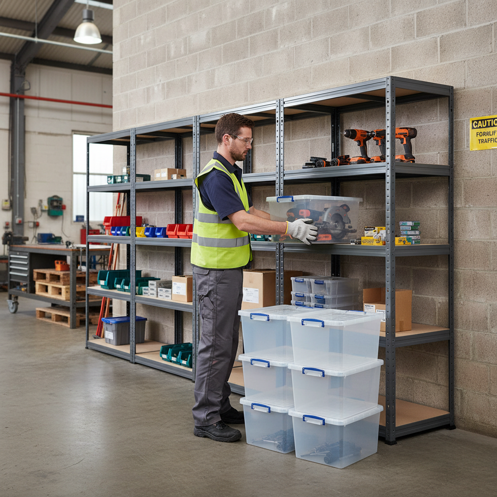 - Heavy Duty Shelving and Plastic Storage Box Bundle!
