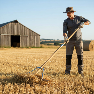 This traditional wooden hay rake is designed for durability and efficiency. Featuring a 1778 mm (70") hardwood shaft, this rake ensures longevity while the wooden head comprises 16 large spaced teeth. These features make it suitable for gathering lightweight materials such as leaves or long grass and maintaining sand bunkers on golf courses.